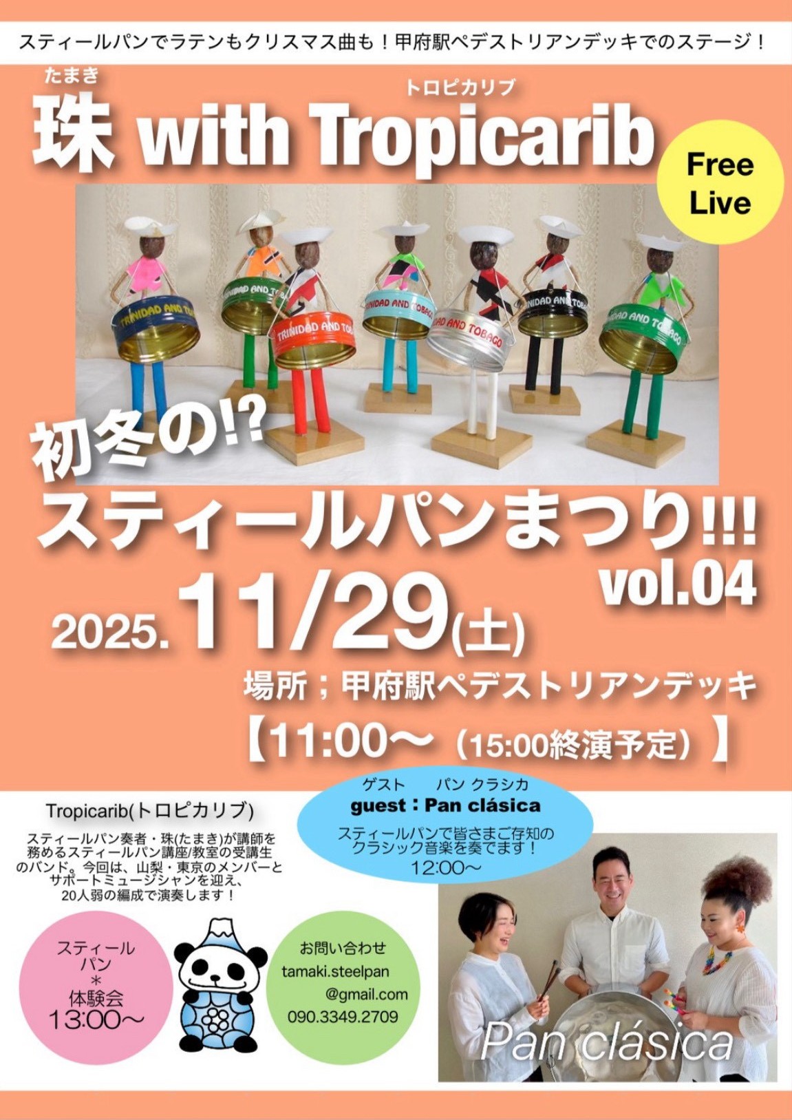 13:00〜スティールパン体験会(13:20まで)