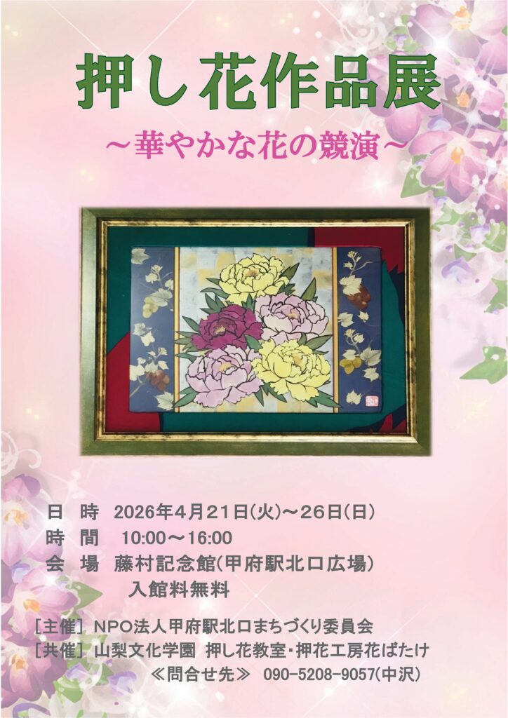 押花工房『花ばたけ』で学ぶ先生と生徒さんの作品展示