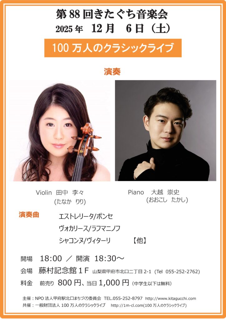 才能ある若手演奏家の生の音を是非お楽しみ下さい。