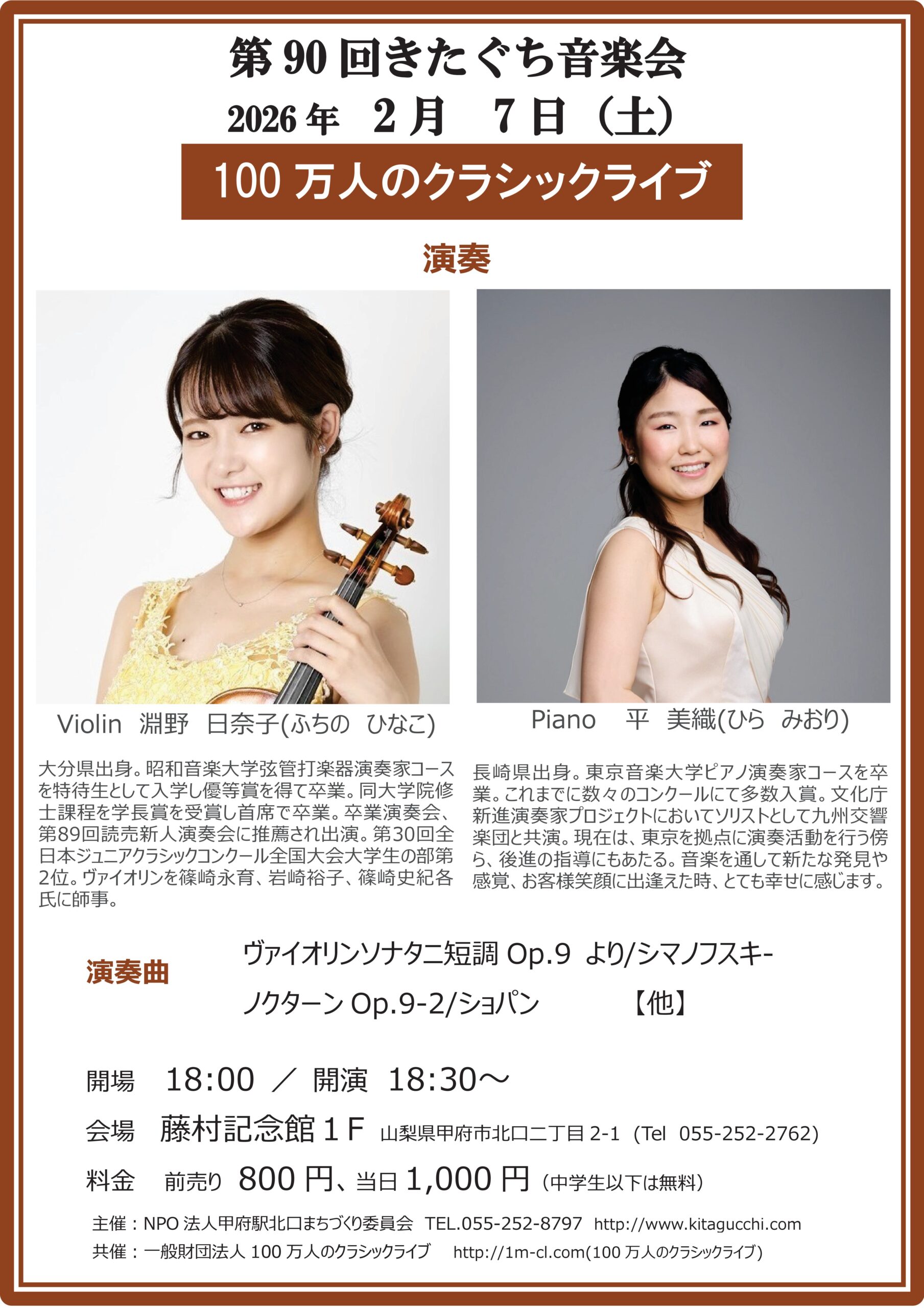 演奏 高木 早紀(ヴァイオリン)、渡邉 千春(ピアノ)