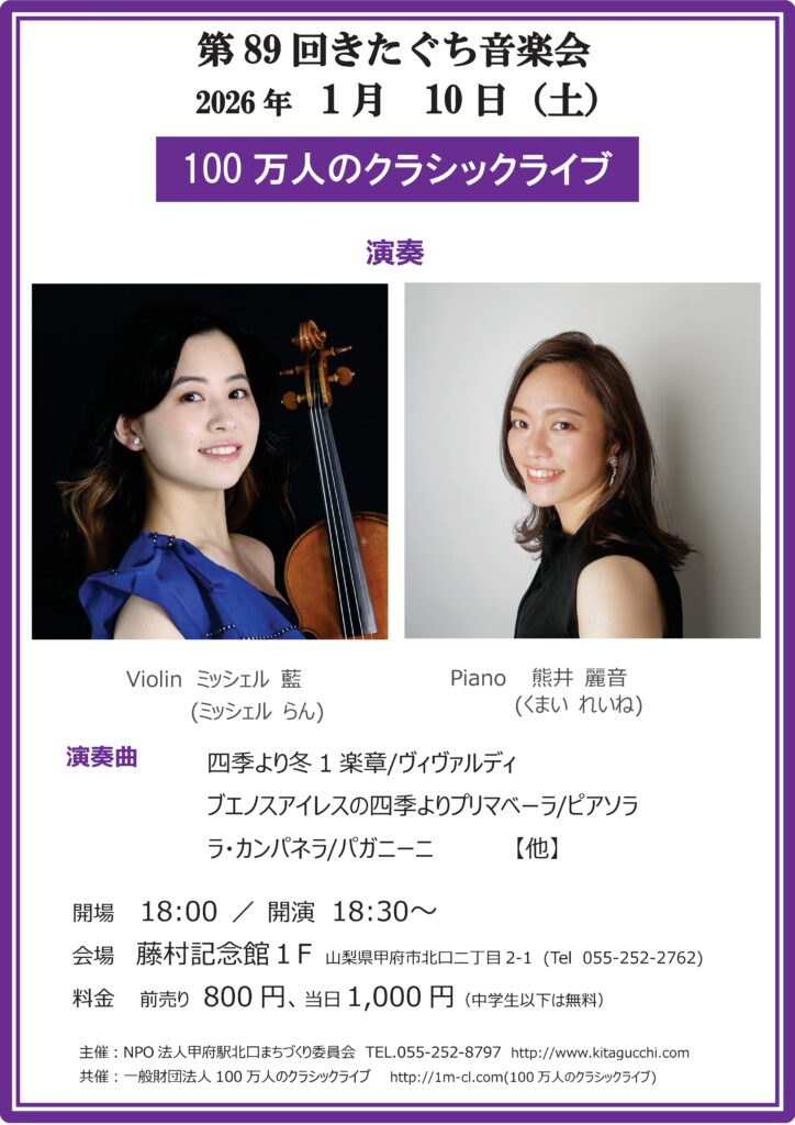 才能ある若手演奏家の生の音を是非お楽しみ下さい。