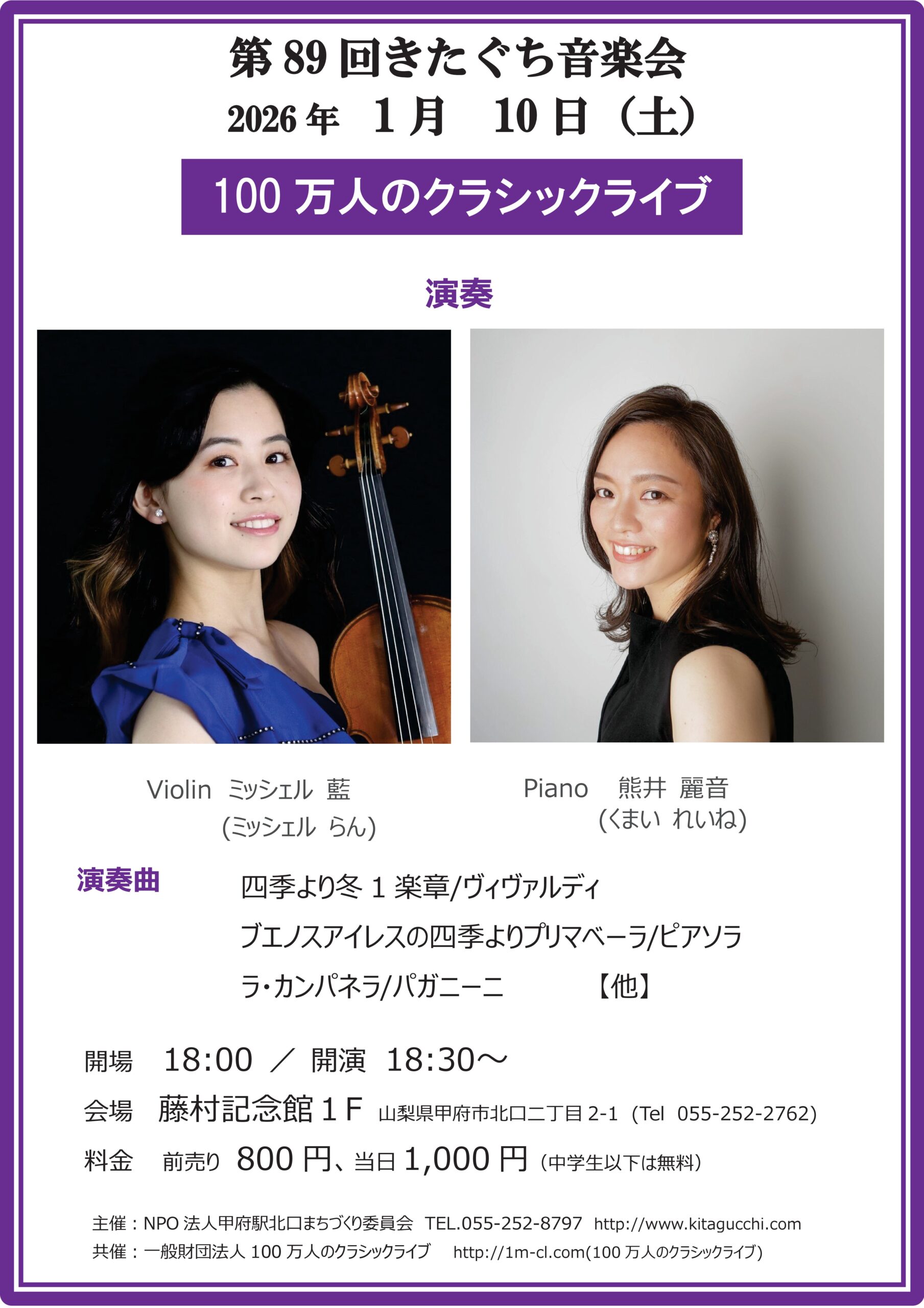 演奏 高木 早紀(ヴァイオリン)、渡邉 千春(ピアノ)